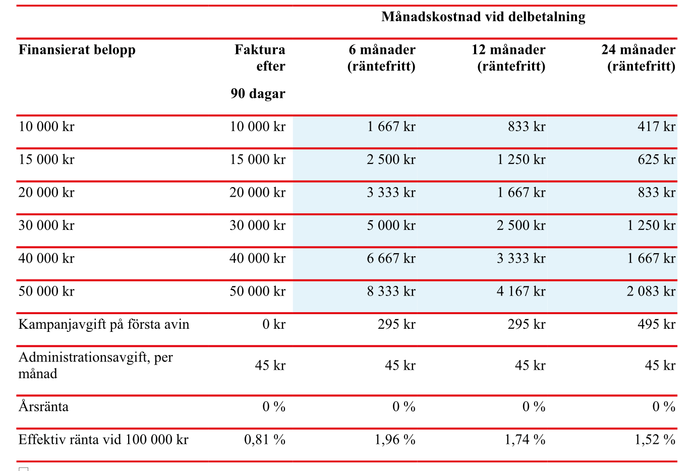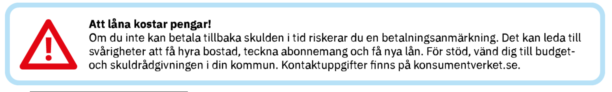 * Du kan när som helst amortera eller betala in hela din skuld utan extra kostnad.